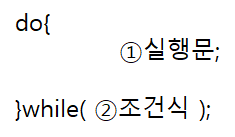 -> 실행문이 모두 실행되면 조건식을 평가한다. 그 결과가 true이면 ① -> ②와 같이 반복 실행을 하고, 조건식의 결과가 false이면 do-while문을 종료한다.