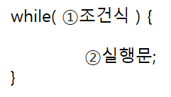 -> 조건식이 true일 경우 실행문을 실행하고, 실행문이 모두 실행되면 다시 조건식으로 되돌아가서 조건식을 판단한다. 조건식이 true라면 ② -> ①로 다시 진행, false라면 while문 종료한다.