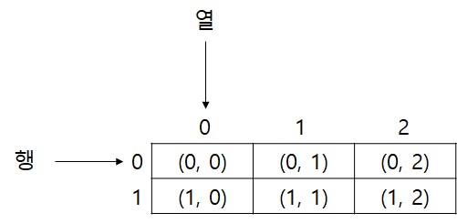 : 2차원 이상의 배열을 의미하며, 값들이 행과 열로서 구성된 배열을 2차원 배열이라고 한다.
