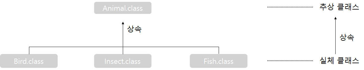 : 객체를 직접 생성할 수 있는 클래스를 실체 클래스라고 한다면 추상 클래스는 이 클래스들의 공통적인 특성을 추출해서 선언한 클래스를의미한다.