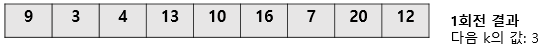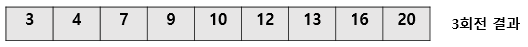 - 배열에 10, 3, 4, 20, 9, 16, 7, 13, 12이 저장되어 있다고 가정 -> 오름차순 정렬